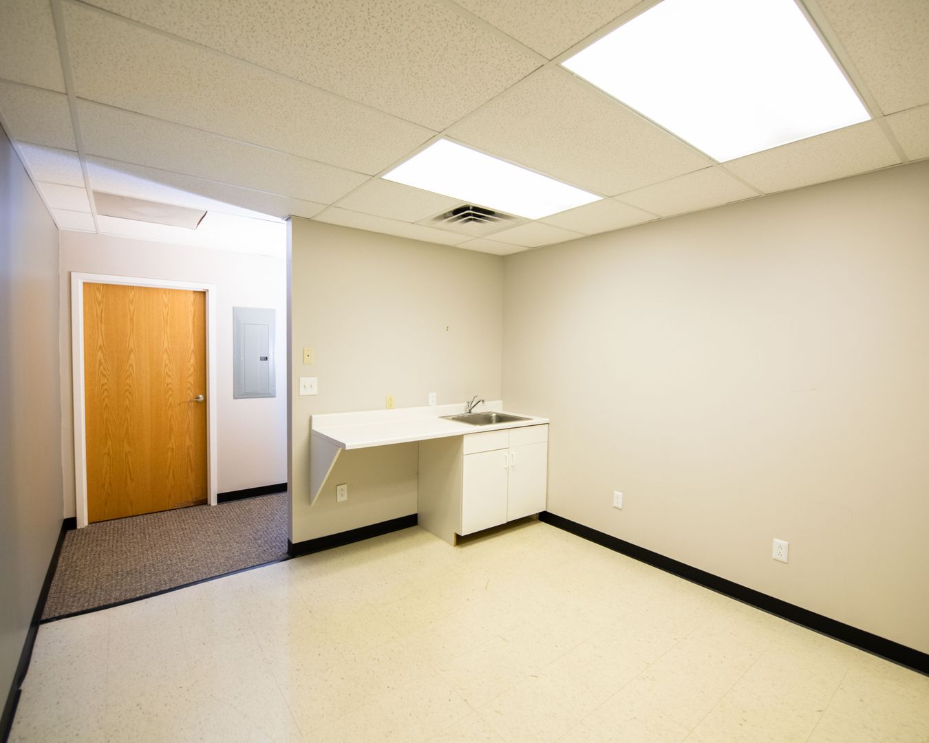 1 break room/kitchenette with sink, cabinets, counters, and space for refrigerator and microwave